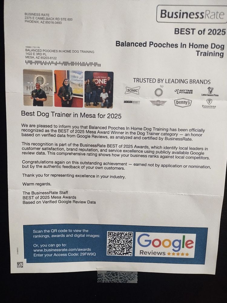 Let me help you and your pooch today! Proudly serving Mesa and surrounding areas with my dog training services.